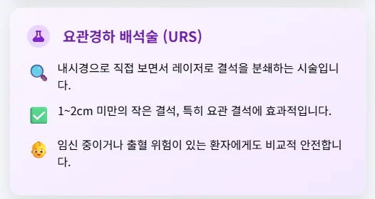 1. 요관경하 배석술 (URS): "내시경으로 직접 보면서!"