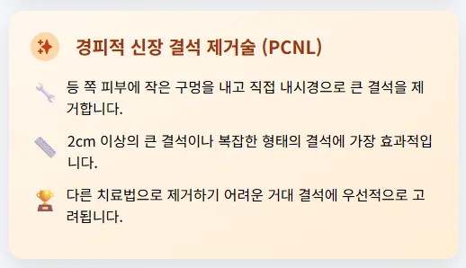 2. 경피적 신장 결석 제거술 (PCNL): "커다란 돌도 문제없어요!"
