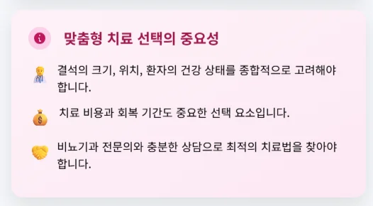 1. 결석 크기와 위치, 그리고 환자의 건강 상태 고려