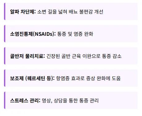 앞서 말씀드린 만성 골반통 증후군(CP/CPPS)과 같이 세균 감염이 아닌 경우에는 항생제보다는 다른 비약물적 치료와 생활 습관 개선이 더욱 중요합니다.