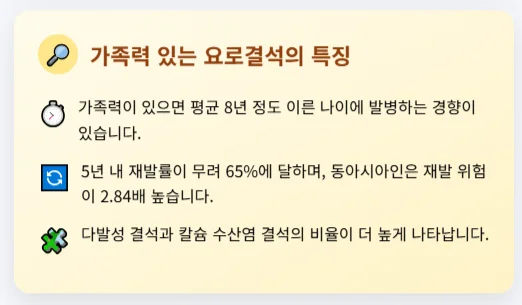 4. 가족력 있는 요로결석, 어떤 특징이 있나요?